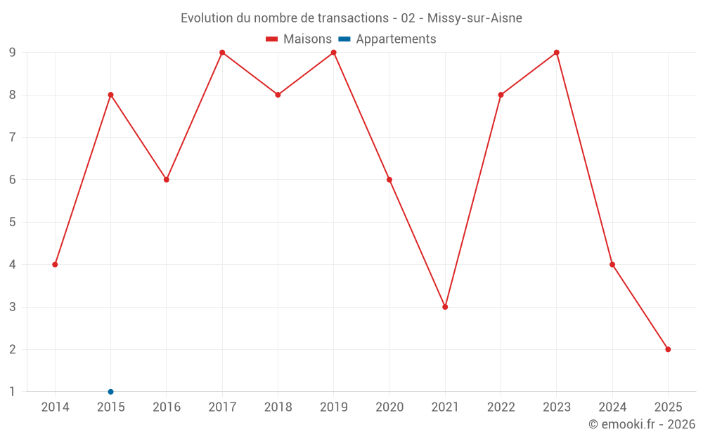 Carte des prix de l'immobilier dans la commune de Missy-sur-Aisne, choississez une section pour voir les transactions par parcelle.