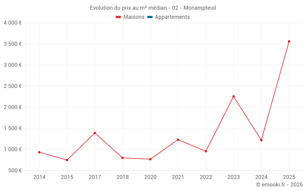 Carte des prix de l'immobilier dans la commune de Monampteuil, choississez une section pour voir les transactions par parcelle.