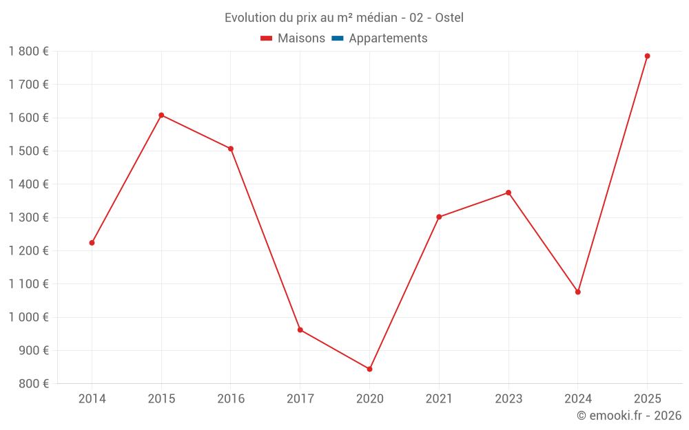 Carte des prix de l'immobilier dans la commune d'Ostel, choississez une section pour voir les transactions par parcelle.