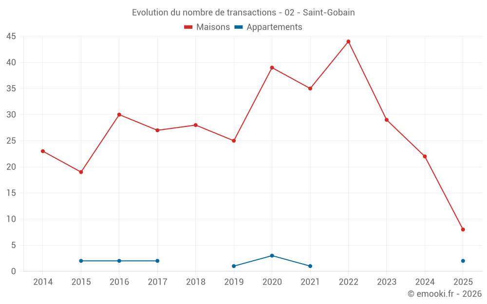 Carte des prix de l'immobilier dans la commune de Saint-Gobain, choississez une section pour voir les transactions par parcelle.