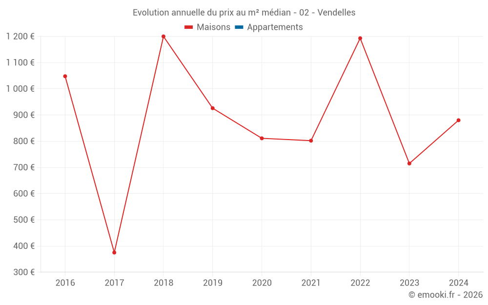 Carte des prix de l'immobilier dans la commune de Vendelles, choississez une section pour voir les transactions par parcelle.
