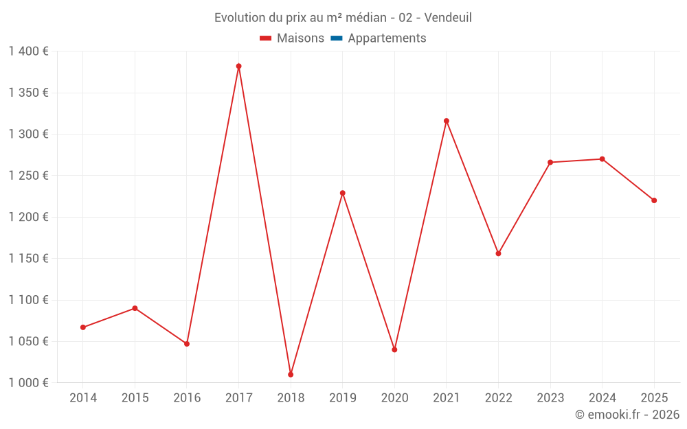 Carte des prix de l'immobilier dans la commune de Vendeuil, choississez une section pour voir les transactions par parcelle.