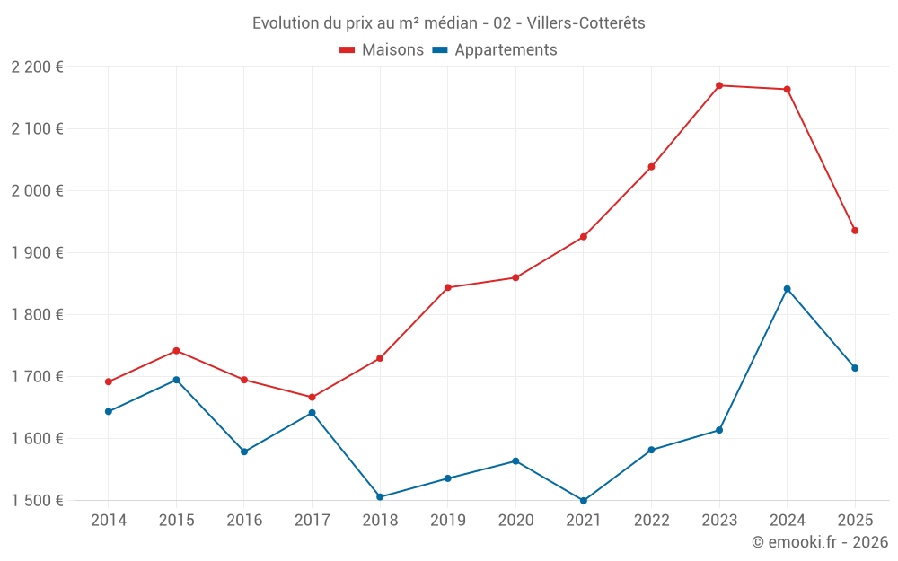 Carte des prix de l'immobilier dans la commune de Villers-Cotterêts, choississez une section pour voir les transactions par parcelle.