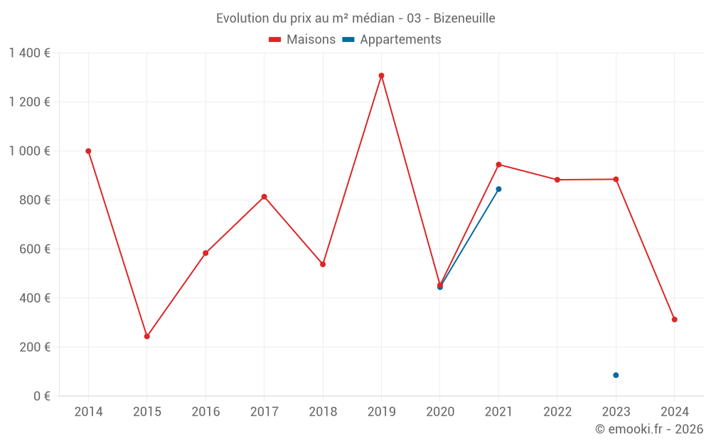 Carte des prix de l'immobilier dans la commune de Bizeneuille, choississez une section pour voir les transactions par parcelle.