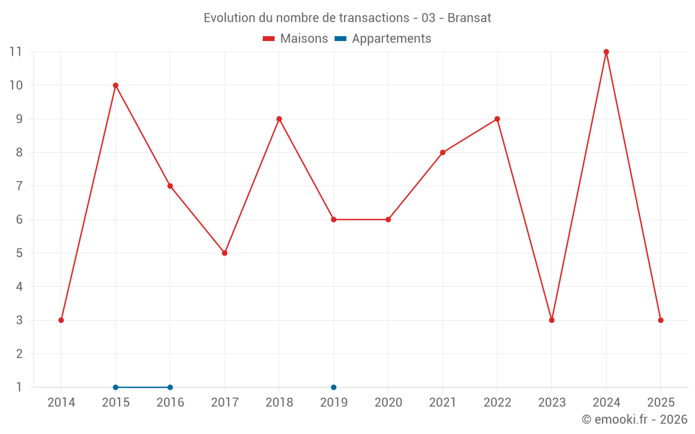 Carte des prix de l'immobilier dans la commune de Bransat, choississez une section pour voir les transactions par parcelle.