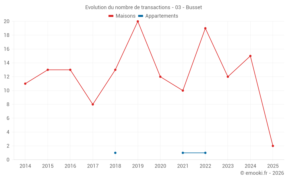 Carte des prix de l'immobilier dans la commune de Busset, choississez une section pour voir les transactions par parcelle.