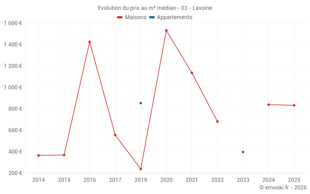 Carte des prix de l'immobilier dans la commune de Lavoine, choississez une section pour voir les transactions par parcelle.
