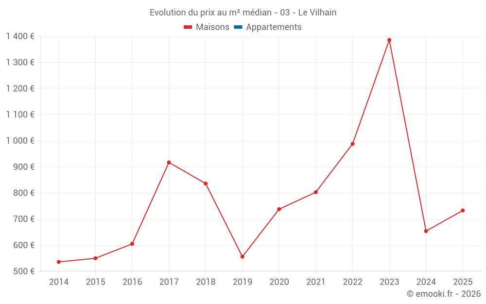 Carte des prix de l'immobilier dans la commune du Vilhain, choississez une section pour voir les transactions par parcelle.
