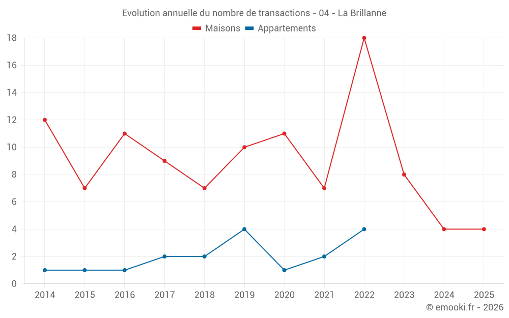 Le prix au m² des maisons a diminué de 19% depuis 1 an, mais il a augmenté de 19% en 6 ans.