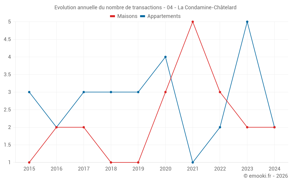 Attention, dernière année incomplète. Projections effectuées sur la base des proportions entre semestres de l'année précédente au niveau départemental/national et par catégorie de bien.