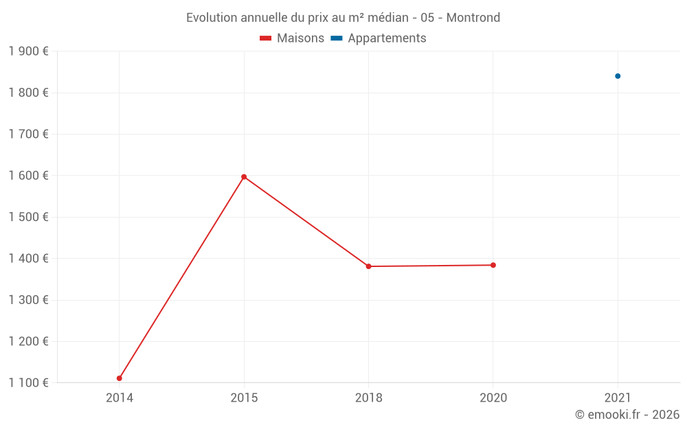 Evolution du prix au m² médian des maisons