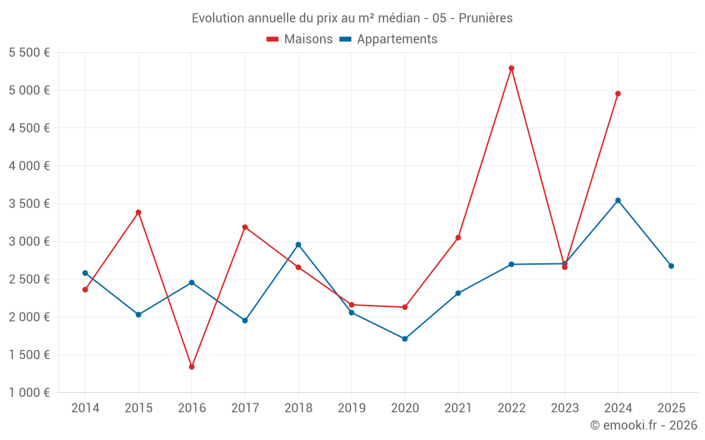 Prix du m² à Prunières