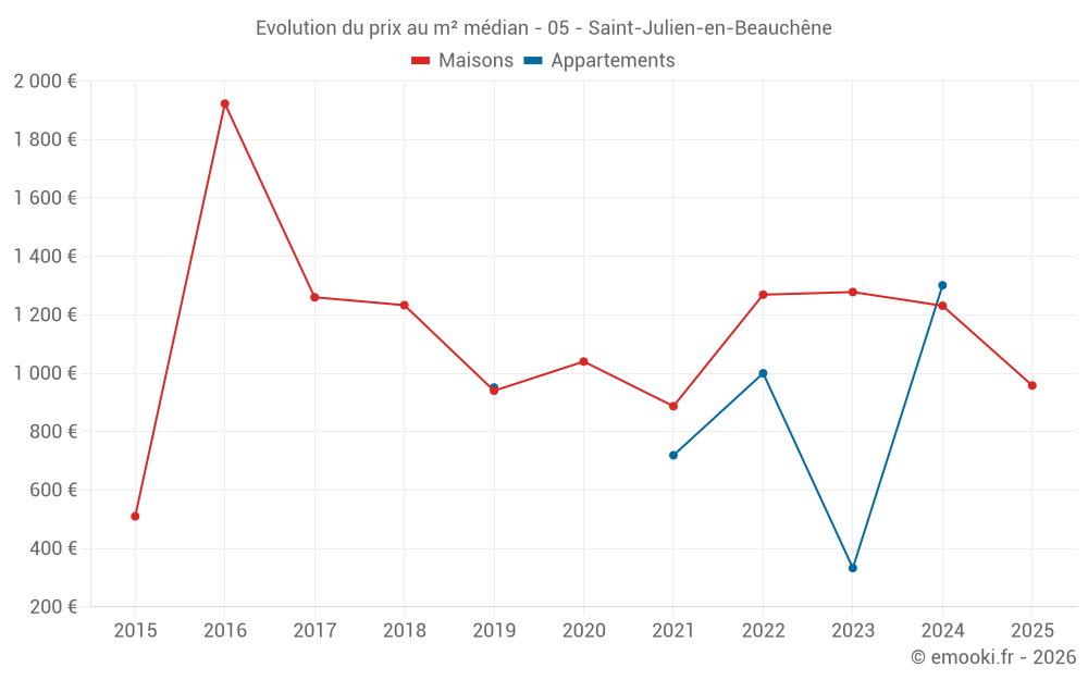 Attention, dernière année incomplète. Projections effectuées sur la base des proportions entre semestres de l'année précédente au niveau départemental/national et par catégorie de bien.