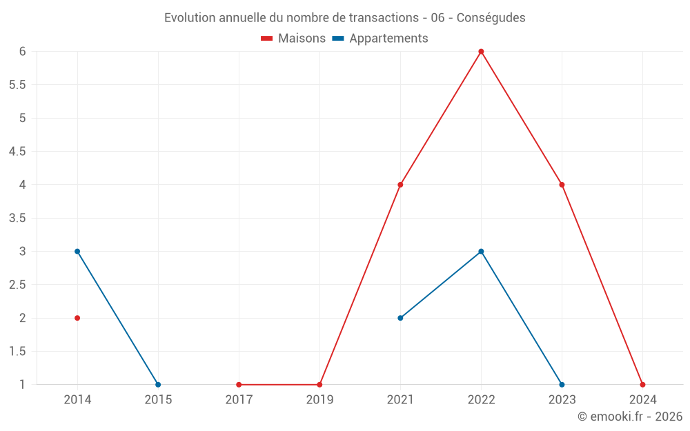 Attention, dernière année incomplète. Projections effectuées sur la base des proportions entre semestres de l'année précédente au niveau départemental/national et par catégorie de bien.
