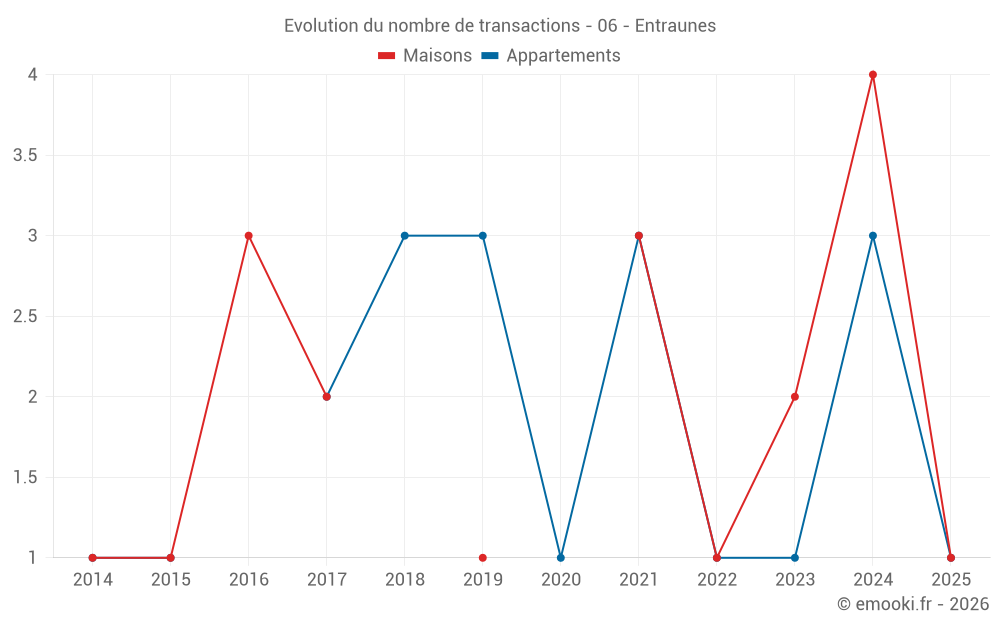 Carte des prix de l'immobilier dans la commune d'Entraunes, choississez une section pour voir les transactions par parcelle.