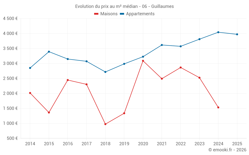 Carte des prix de l'immobilier dans la commune de Guillaumes, choississez une section pour voir les transactions par parcelle.