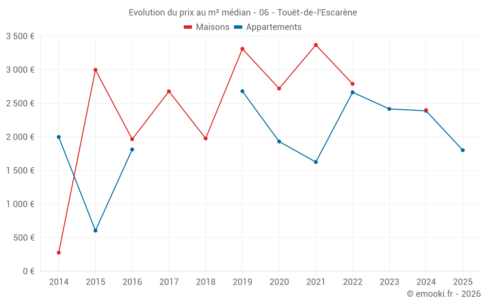 Carte des prix de l'immobilier dans la commune de Touët-de-l'Escarène, choississez une section pour voir les transactions par parcelle.