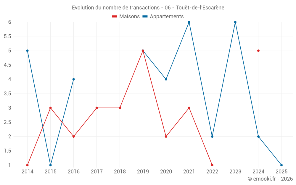 Attention, dernière année incomplète. Projections effectuées sur la base des proportions entre semestres de l'année précédente au niveau départemental/national et par catégorie de bien.