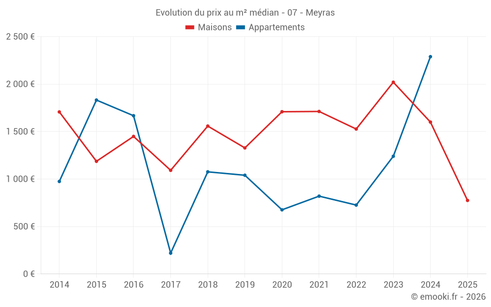 Carte des prix de l'immobilier dans la commune de Meyras, choississez une section pour voir les transactions par parcelle.