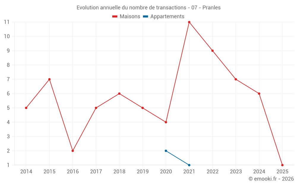 Carte des prix de l'immobilier dans la commune de Pranles, choississez une section pour voir les transactions par parcelle.