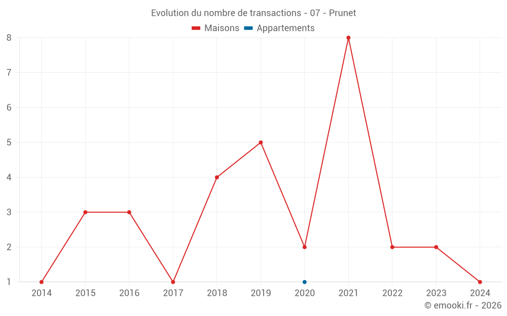 Carte des prix de l'immobilier dans la commune de Prunet, choississez une section pour voir les transactions par parcelle.