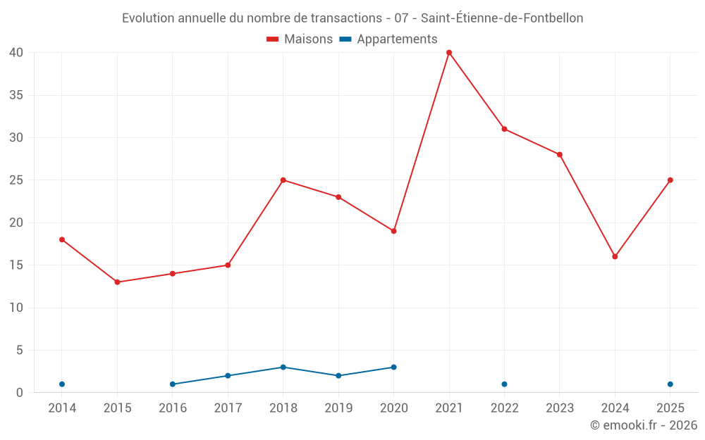 Le prix médian sur les 25 transactions de maisons des 12 derniers mois dans la commune de Saint-Étienne-de-Fontbellon était de 2 588 € par mètre carré pour une valeur foncière médiane de 255 000 €. Sur cette période 60% des transactions se sont situées entre 1 851 et 3 067 € par mètre carré (du 2ème au 8ème déciles).