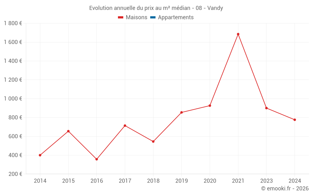 Carte des prix de l'immobilier dans la commune de Vandy, choississez une section pour voir les transactions par parcelle.