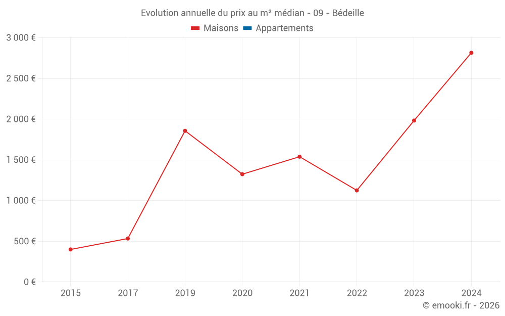 Evolution du prix au m² médian des maisons