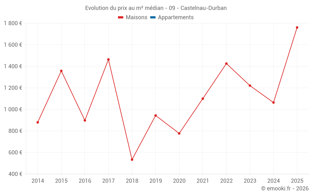 Attention, dernière année incomplète. Projections effectuées sur la base des proportions entre semestres de l'année précédente au niveau départemental/national et par catégorie de bien.