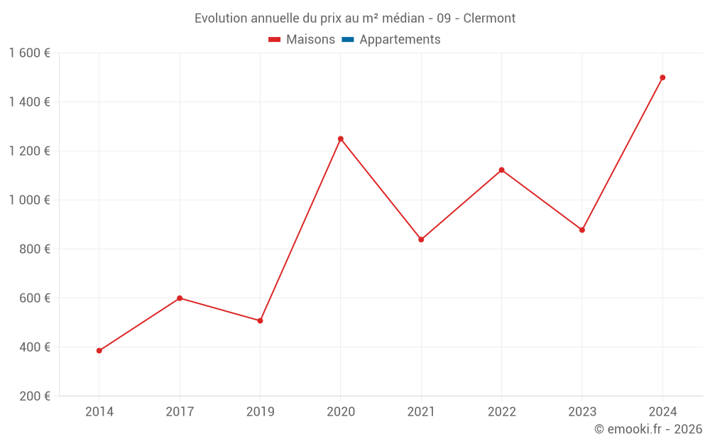 Evolution du prix au m² médian des maisons