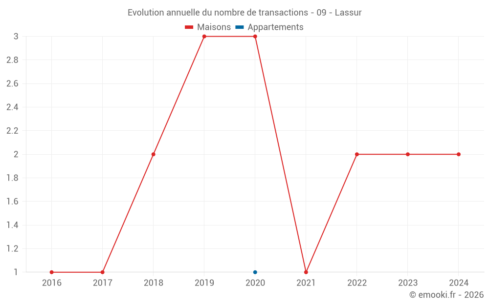 Carte des prix de l'immobilier dans la commune de Lassur, choississez une section pour voir les transactions par parcelle.
