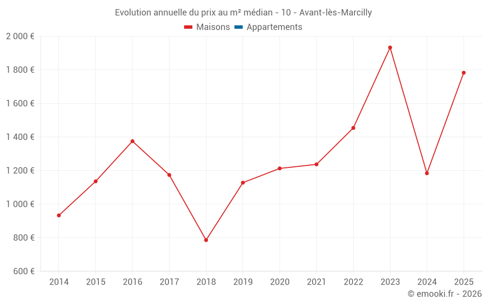 Le prix au m² des maisons a diminué de 7.8% depuis 2 ans, mais il a augmenté de 91% en 11 ans.