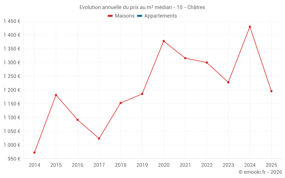 Le prix médian sur les 14 transactions de maisons des 24 derniers mois dans la commune de Châtres était de 1 306 € par mètre carré pour une valeur foncière médiane de 122 500 €. Sur cette période 60% des transactions se sont situées entre 965 et 1 694 € par mètre carré (du 2ème au 8ème déciles).