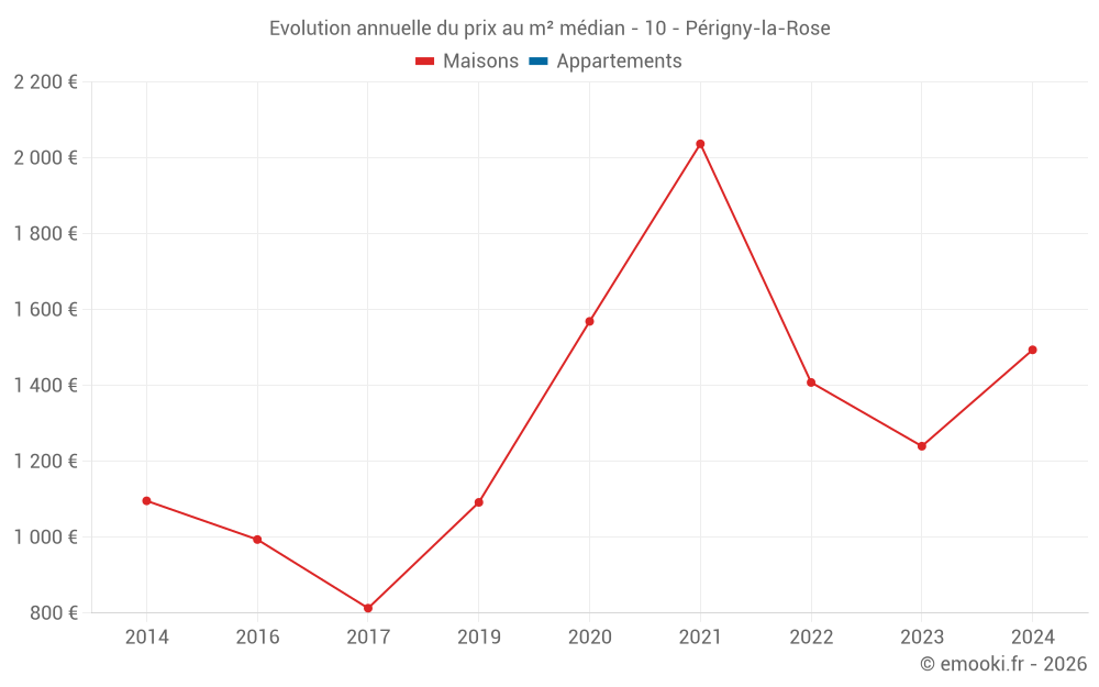 Evolution du prix au m² médian des maisons