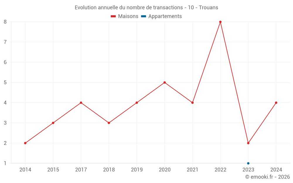 Carte des prix de l'immobilier dans la commune de Trouans, choississez une section pour voir les transactions par parcelle.