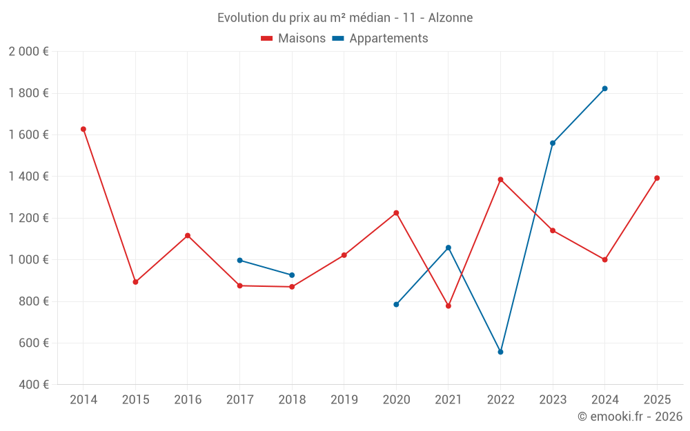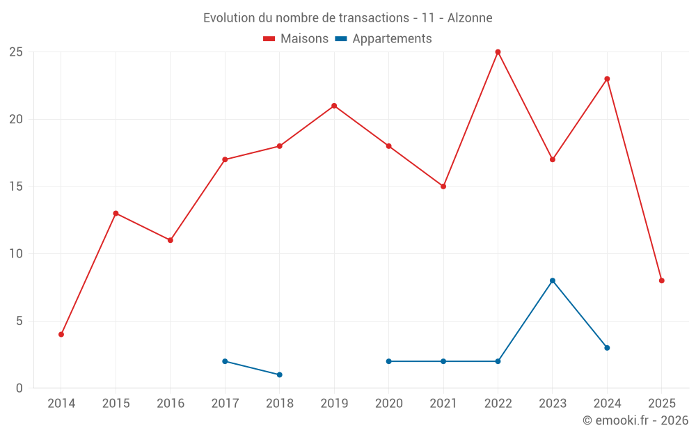 Carte des prix de l'immobilier dans la commune d'Alzonne, choississez une section pour voir les transactions par parcelle.