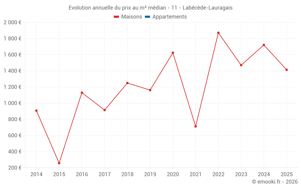 Le prix médian sur les 17 transactions de maisons des 24 derniers mois dans la commune de Labécède-Lauragais était de 1 729 € par mètre carré pour une valeur foncière médiane de 186 200 €. Sur cette période 60% des transactions se sont situées entre 1 067 et 2 241 € par mètre carré (du 2ème au 8ème déciles).
