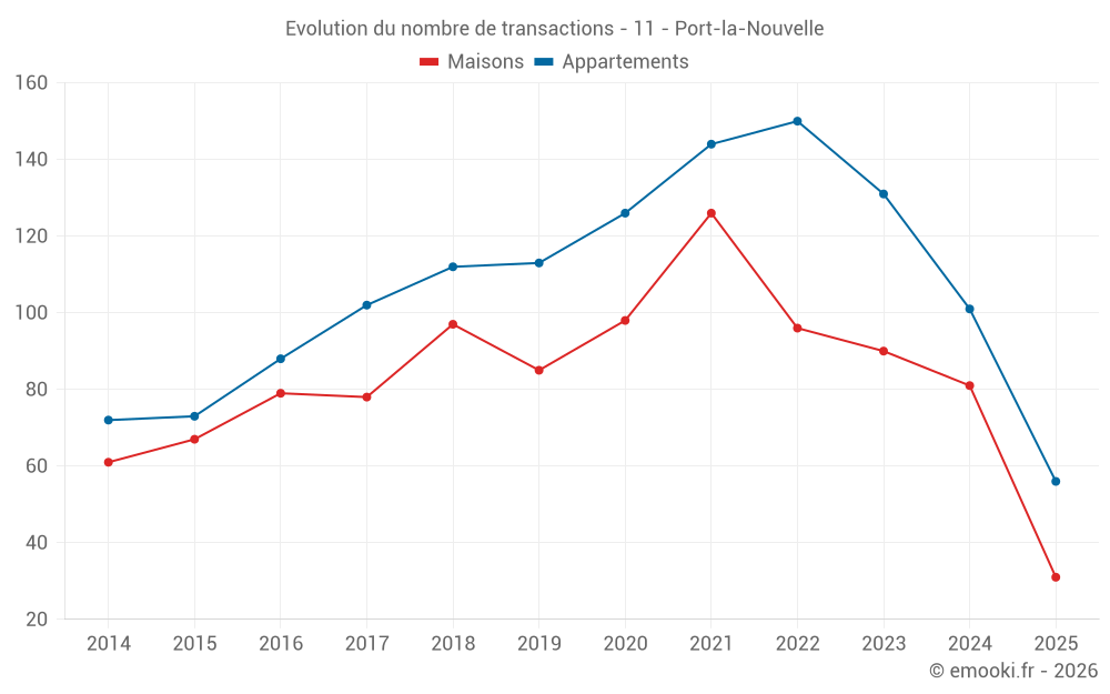 Attention, dernière année incomplète. Projections effectuées sur la base des proportions entre semestres de l'année précédente au niveau départemental/national et par catégorie de bien.
