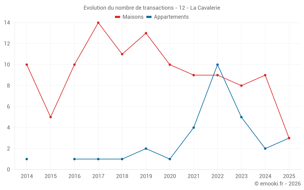 Carte des prix de l'immobilier dans la commune de la Cavalerie, choississez une section pour voir les transactions par parcelle.