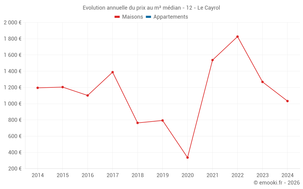 Attention, dernière année incomplète. Projections effectuées sur la base des proportions entre semestres de l'année précédente au niveau départemental/national et par catégorie de bien.