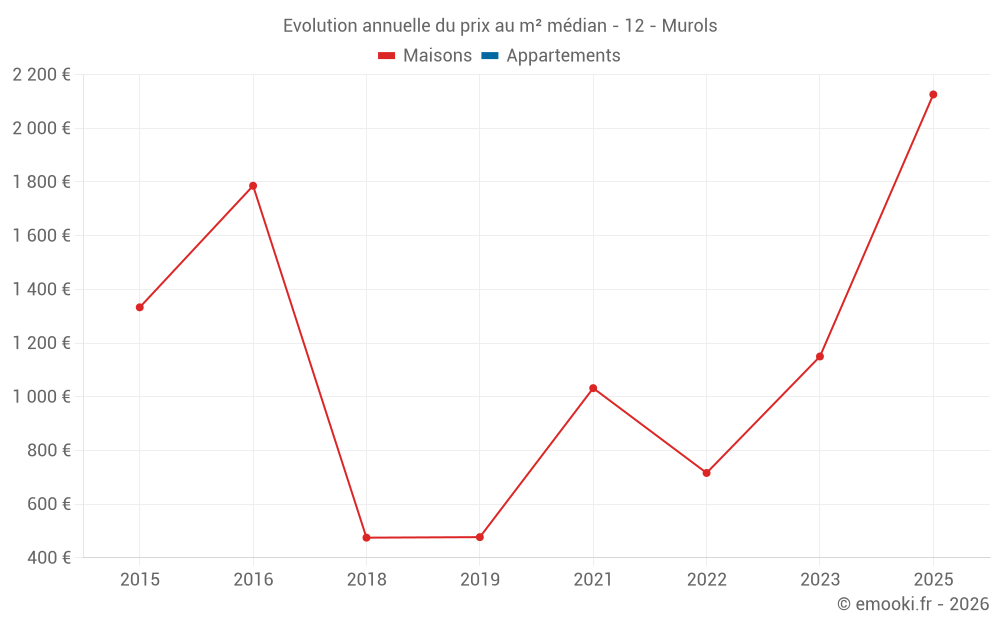 Evolution du prix au m² médian des maisons