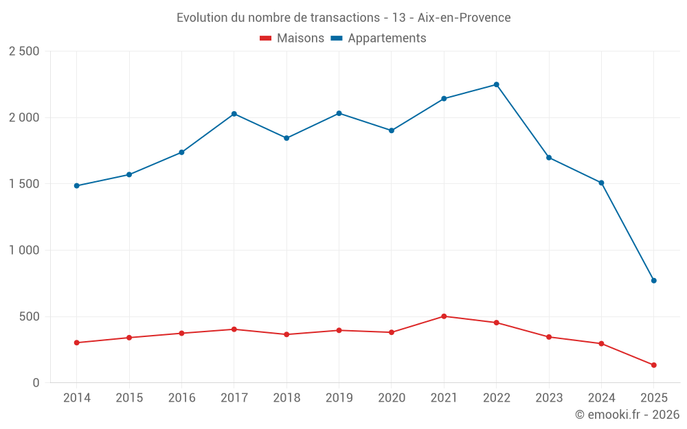 Attention, dernière année incomplète. Projections effectuées sur la base des proportions entre semestres de l'année précédente au niveau départemental/national et par catégorie de bien.