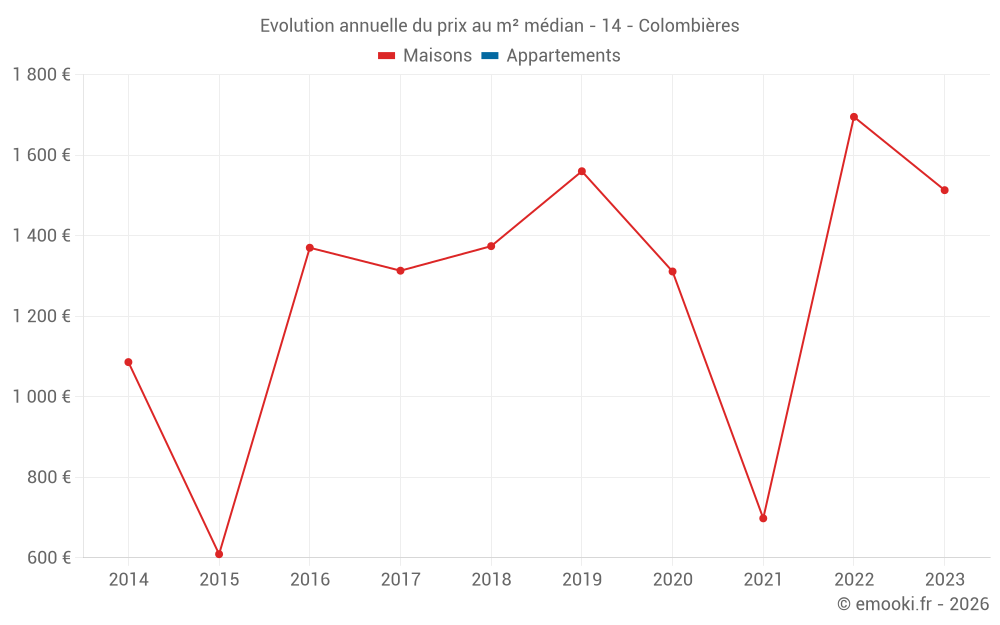 Evolution du prix au m² médian des maisons