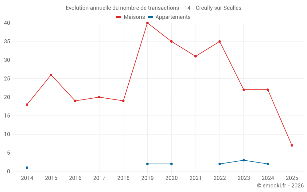 Le prix médian sur les 21 transactions de maisons des 12 derniers mois dans la commune de Creully sur Seulles était de 2 113 € par mètre carré pour une valeur foncière médiane de 233 000 €. Sur cette période 60% des transactions se sont situées entre 1 542 et 2 592 € par mètre carré (du 2ème au 8ème déciles).