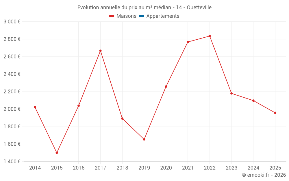 Le prix au m² des maisons a diminué de 31% depuis 3 ans, mais il a augmenté de 30% en 10 ans.