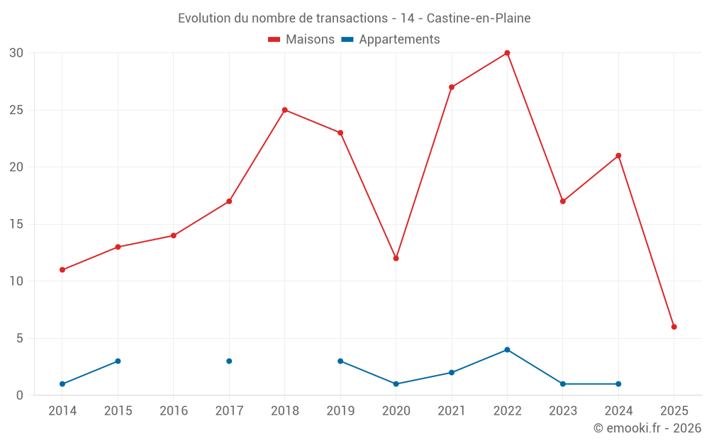 Attention, dernière année incomplète. Projections effectuées sur la base des proportions entre semestres de l'année précédente au niveau départemental/national et par catégorie de bien.