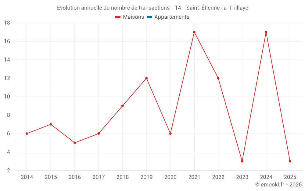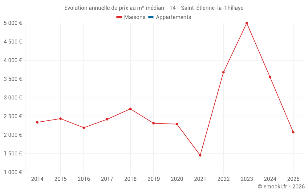 Le prix médian sur les 23 transactions de maisons des 24 derniers mois dans la commune de Saint-Étienne-la-Thillaye était de 3 552 € par mètre carré pour une valeur foncière médiane de 400 000 €. Sur cette période 60% des transactions se sont situées entre 2 487 et 5 134 € par mètre carré (du 2ème au 8ème déciles).