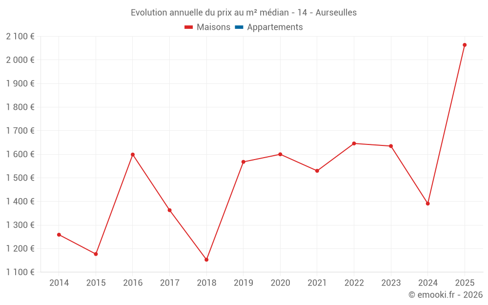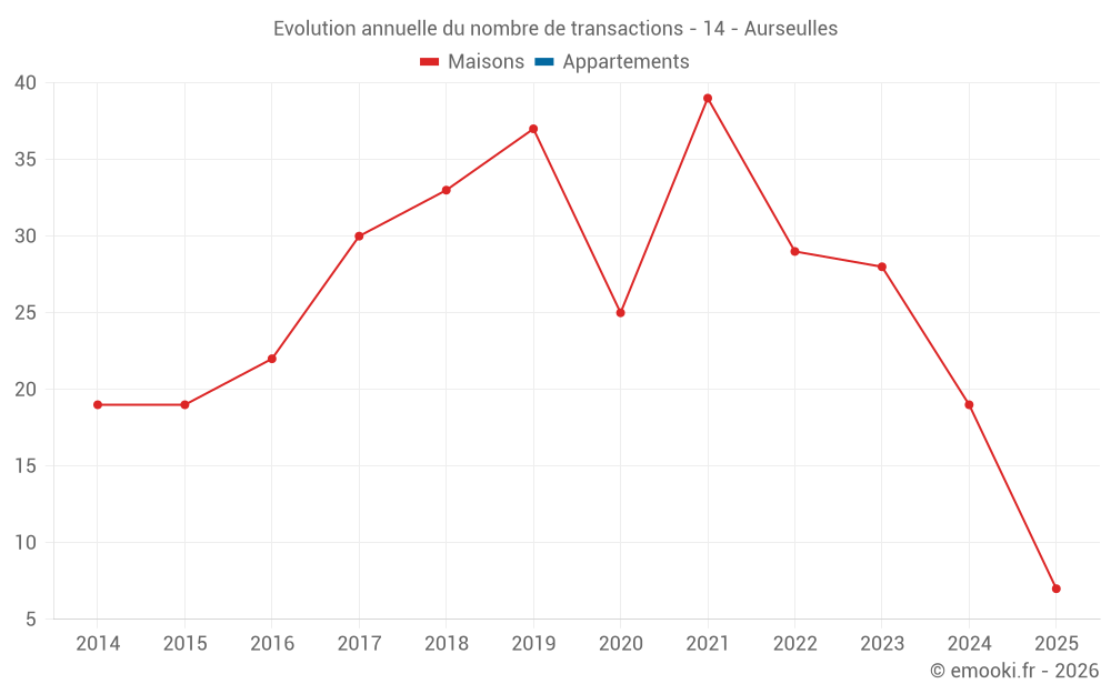 Le prix médian sur les 19 transactions de maisons des 12 derniers mois dans la commune d'Aurseulles était de 1 842 € par mètre carré pour une valeur foncière médiane de 225 000 €. Sur cette période 60% des transactions se sont situées entre 1 136 et 2 144 € par mètre carré (du 2ème au 8ème déciles).