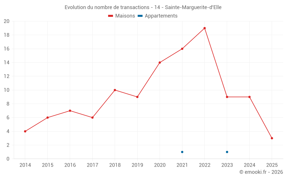 Le prix médian sur les 17 transactions de maisons des 24 derniers mois dans la commune de Sainte-Marguerite-d'Elle était de 1 663 € par mètre carré pour une valeur foncière médiane de 130 000 €. Sur cette période 60% des transactions se sont situées entre 1 059 et 1 977 € par mètre carré (du 2ème au 8ème déciles).