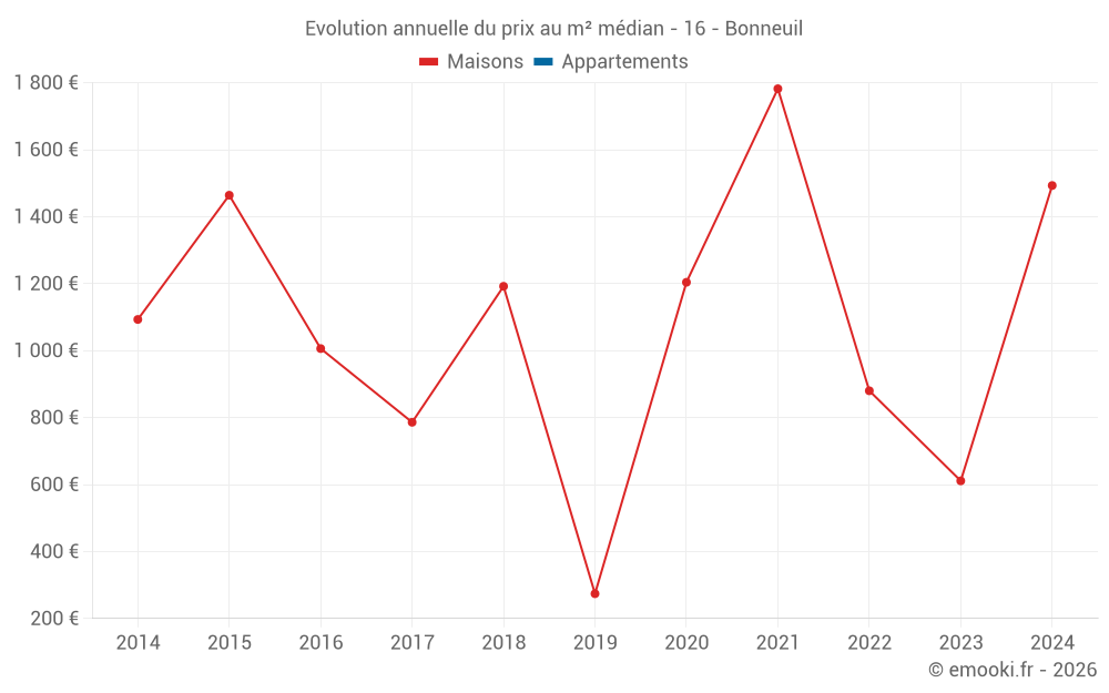 Evolution du prix au m² médian des maisons